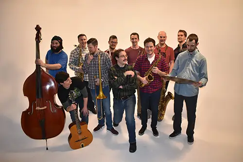 Hailing from Albany, NY, The Dylan Perrillo Orchestra brings the golden age of American jazz to life with a modern sensibility and infectious energy. With six horns, a violin, rhythm section, and vocalist, this 10-piece ensemble captures the charm and sophistication of the 1920s–1950s jazz era—reimagining timeless songs with fresh, vibrant spirit.