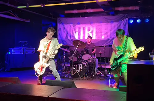 VinTri Hill (vin-tree hill) began in 2019 as a small-school cover band that was halted due to Covid lockdowns. During that time Vincenzo Baldwin performed a daily Facebook concert series and was recognized by local media (article) for his dedication to giving something for people to look forward to. With remote learning and quarantines in full swing, Baldwin went on to write more than 80 original songs with a vision to shift the band to a unique Punk Rock driving force. With Dimitri Cerrone on board and laying down rhythmic and furious drum tracks, the duo got back together and forged ahead with a passion and goal to revive the sound of early 90’s punk. In November 2024, life-long friend and talented musician, Tyler Munson, joined the band, making VinTri Hill a 3 piece, and helping round out their vision and sound.