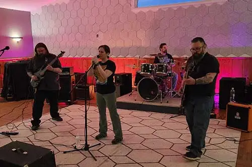 Emerging from the quiet artistry of Mayfield, NY, Sleep of Yavanna is a rising force weaving melodic metal with shades of doom, goth, and new wave—an otherworldly soundtrack anchored by raw emotion and dark atmosphere. The quartet—Diane Solmo (lead vocals), Joe Solmo (guitar & backing vocals), Travis D’Amore (bass), and Mitch Maxson (drums)—made their striking debut in October 2023, immediately capturing the imagination of their Southern Adirondack audience with a performance both intimate and powerful.