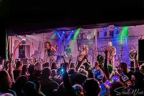 Live your fantasy and embrace the stranger side of life with Bella’s Bartok. A band known for raucous theatrical performances and an outspoken political message of finding hope in a world beset by cruel uncertainty. With utter joy, they seamlessly blend a rich cacophony of sound and soul into their music with influences ranging from Punk to Folk and Pop to Americana. Let your freak flag fly high, fiercely and free, throw your societal inhibitions to the wayside and seek comfort in the warm sonic embrace of Bella’s Bartok. We are the night and you are bound to boogie.